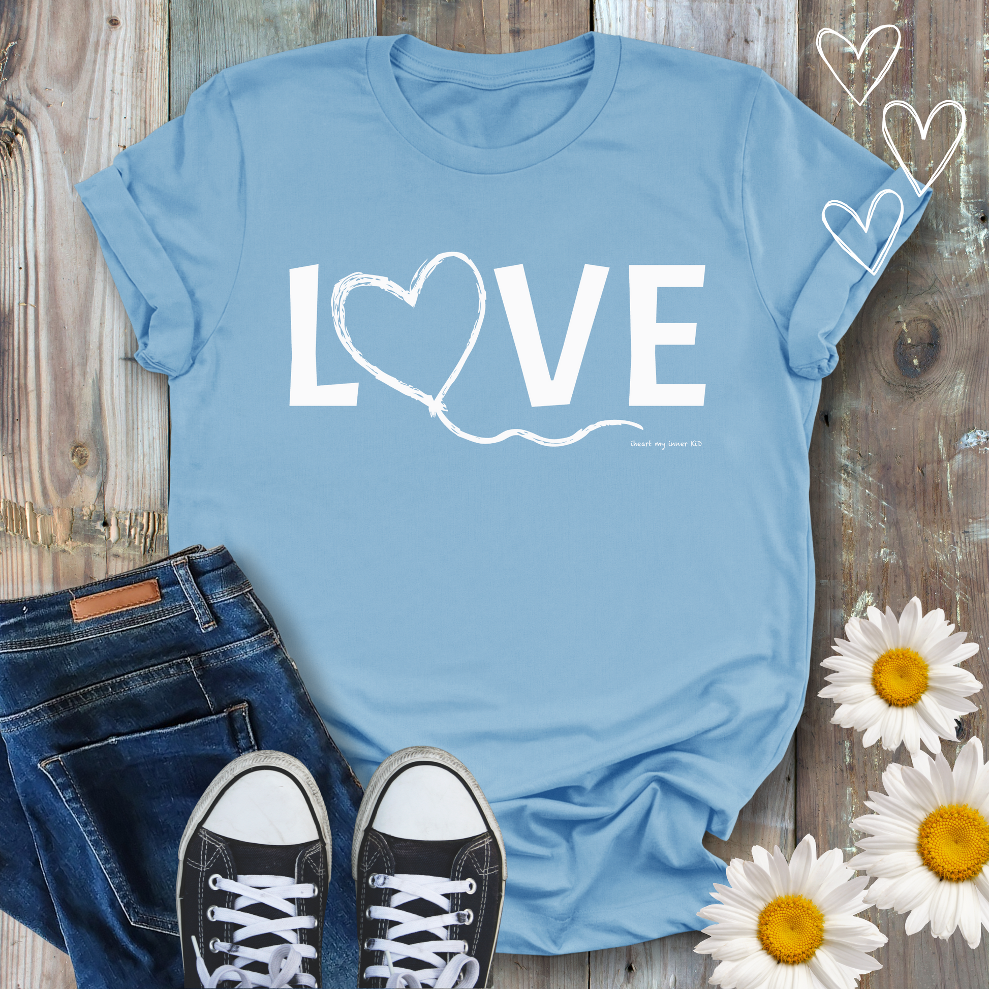 This playful “LOVE” design, with its heart-shaped balloon taking the place of the O, is a sweet reminder that love is meant to feel light, joyful, and free—just like childhood.