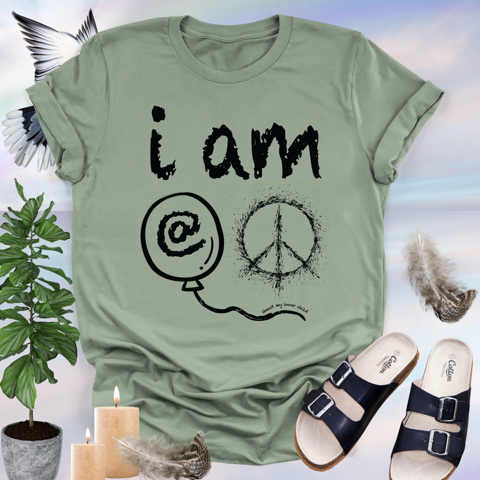 This “i am a peace” design blends playful creativity with a timeless message of love and harmony. The heart, @ symbol, and peace sign bring a nostalgic nod to the doodles and symbols we cherished in our youth, reminding us of simpler times filled with joy and connection.