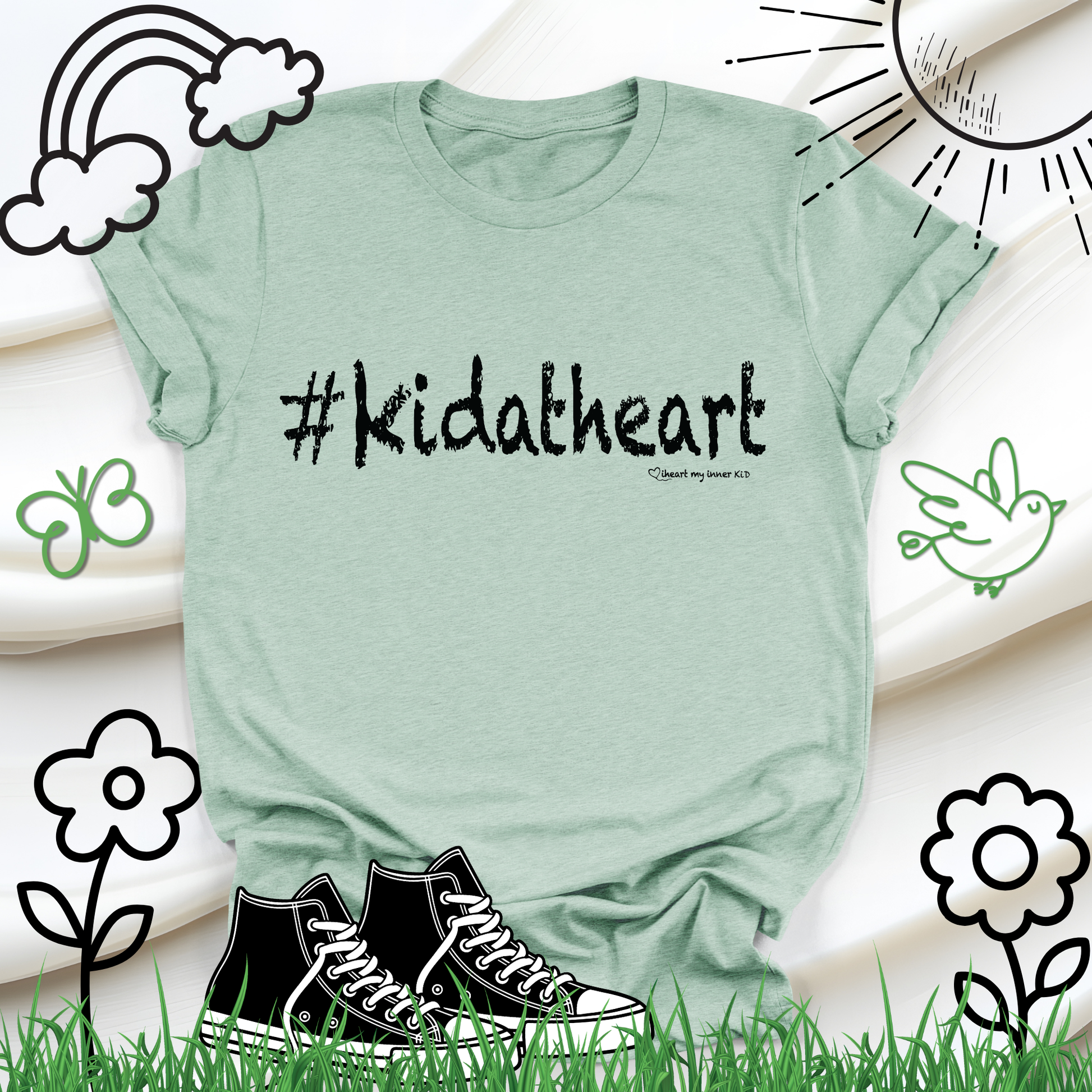 Keep your playful spirit alive with our “#kidatheart” tee — a joyful reminder that growing up doesn’t mean losing your sense of wonder. The playful chalk lettering brings back the carefree days of doodles and daydreams, inviting your inner child to laugh, explore, and simply be.